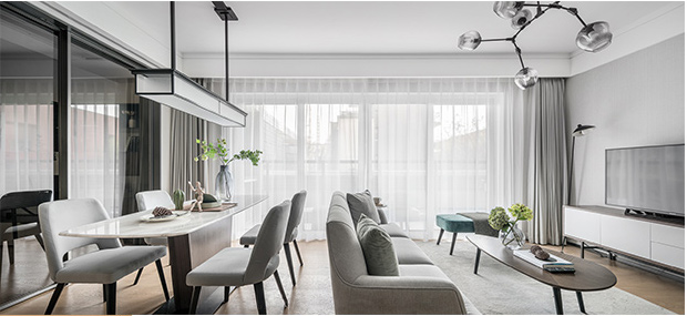 尚海整装采用VR和实景样板间,以虚拟和现实相结合的方式,打造集生活空间展示、材料选样、软装搭配、隐蔽工艺解析、施工管理一览、上万套案例查询为一体的一站式实景家居体验中心。